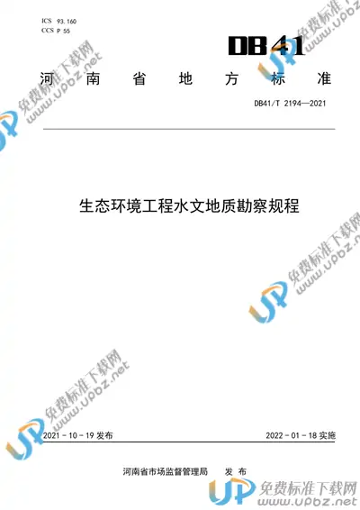 地方标准《生态环境工程水文地质勘察规程》,主管部门为河南省市场监督管理局。