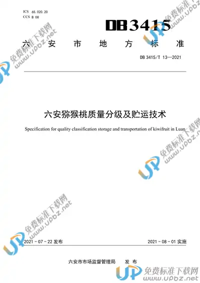 DB3415/T 13-2021 六安猕猴桃质量分级及贮运技术