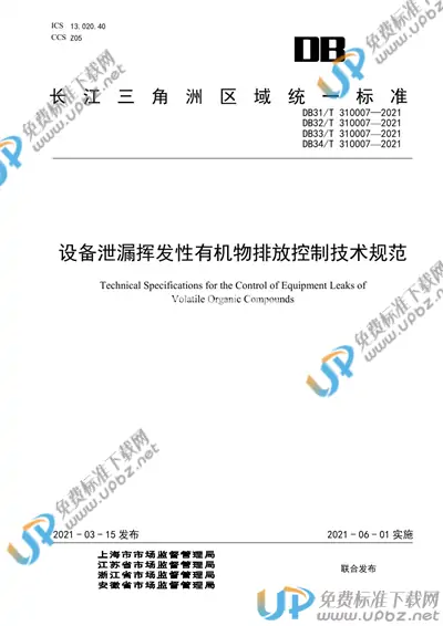 地方标准《设备泄漏挥发性有机物排放控制技术规范》由上海市生态环境局、江苏省环境管理标准化技术委员会、浙江省环境保护标准化技术委员会、安徽省生态环境厅归口上报,主管部门为江苏省市场监督管理局。本文件适用于长江三角洲区域企业开展设备泄漏挥发性有机物排放控制工作。