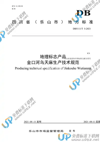 DB5111/T5-2020地理标志产品金口河乌天麻生产技术规范DB51/T1640-2013天麻生产技术规程DB43/T797-2013地理标志产品碣滩茶生产技术规范DB53/T1077—2021小草坝天麻生产技术规程DB5103/T16-2020地理标志产品自贡冷吃兔生产技术规范DB5115/T58-2020地理标志产品宜宾酒生产技术规范DB5115/T70-2020地理标志产品李庄白酒生产技术规范DB5115/T59-2020地理标志产品鹿鸣贡茶生产技术规范DB5120/T2—2020地理标志产品周礼粉条生产技术规范DB5118/T12-2020地理标志产品汉源花椒生产技术规范