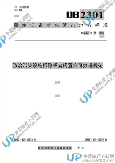 DB2301/T74-2020 《防治污染设施拆除或者闲置许可办理规范》