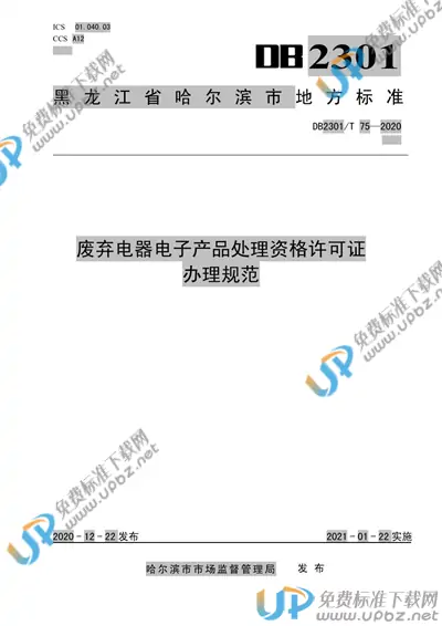 DB2301/T75-2020 《废弃电器电子产品处理资格许可证办理规范》
