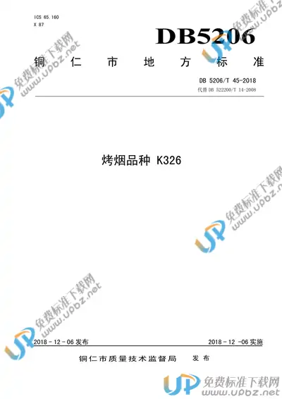 地方标准《烤烟品种K326》由铜仁市烟草专卖局归口上报,主管部门为铜仁市市场监督管理局。