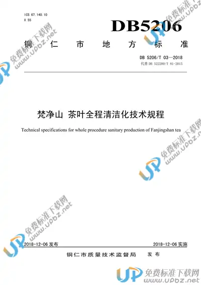 DB5206/T03-2018 梵净山茶叶全程清洁化技术规程