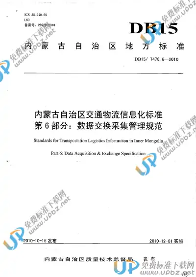 地方标准《内蒙古自治区交通物流信息化标准 第6部分: 数据交换采集管理》,主管部门为内蒙古自治区质量技术监督局。