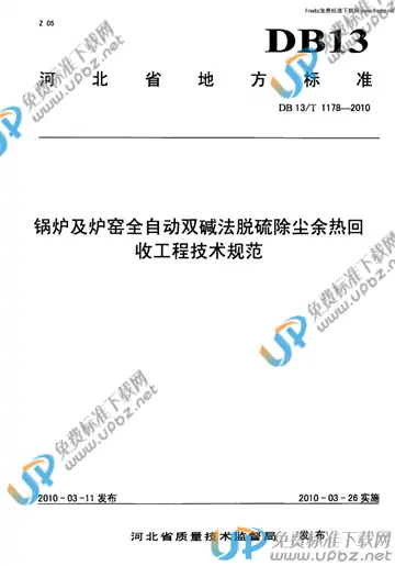 DB13/T 1178-2010 锅炉及炉窑全自动双碱法脱硫除尘余热回收工程技术规范