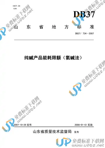 DB37/ 734-2007 纯碱产品能耗限额(氨碱法)
