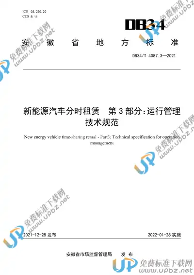 地方标准《新能源汽车分时租赁 第3部分:运行管理技术规范》由安徽省汽车标准化技术委员会归口上报,主管部门为安徽省市场监督管理局。