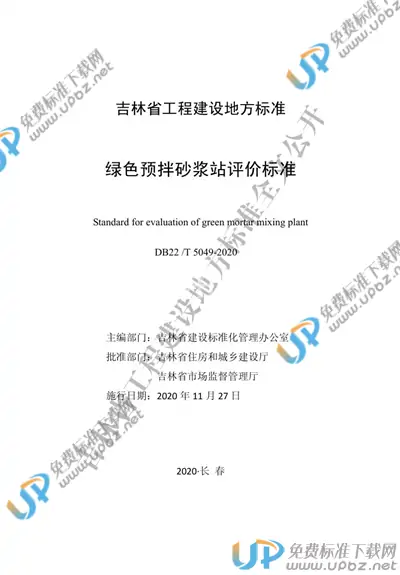 DB22/T 5049-2020 绿色预拌砂浆站评价标准