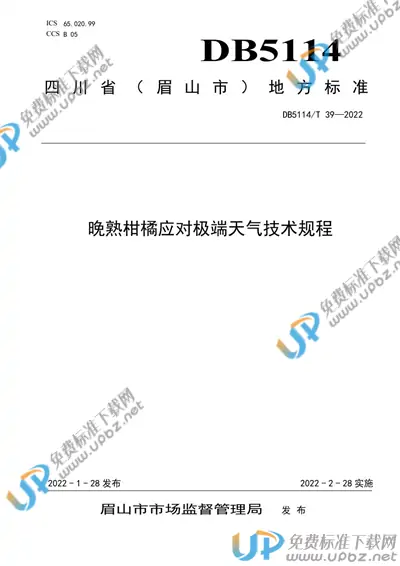 地方标准《晚熟柑橘应对极端天气技术规程》,主管部门为眉山市市场监督管理局。