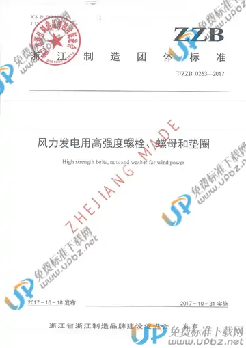 T/ZZB 0263-2017 风力发电用高强度螺栓、螺母和垫圈