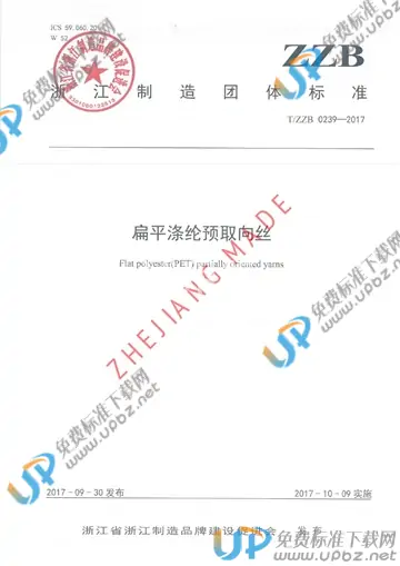 本标准规定了扁平涤纶预取向丝的术语和定义、产品分类和标识、基本要求、技术要求、试验方法、检验规则、标志、包装、运输、贮存和质量承诺。本标准适用于总线密度为75dtex~600dtex、单丝线密度0.5dtex~6.0dtex、扁平截面、本色、有光及半消光扁平涤纶预取向丝。