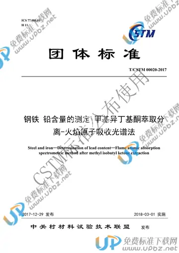 T/CSTM 00020-2017 钢铁及合金 铅含量的测定 甲基异丁基酮萃取分离-火焰原子吸收光谱法