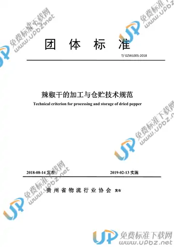 T/GZWL 005-2018 辣椒干的加工与仓贮技术规范