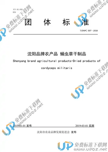 - 标准名称:沈阳品牌农产品 蛹虫草干制品
