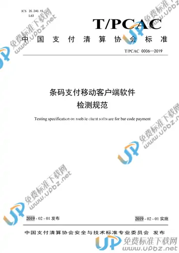 T/PCAC 0006-2019 条码支付移动客户端软件检测规范
