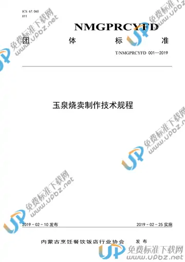 本标准规定了玉泉烧卖的术语和定义、原料要求、制作过程卫生要求、制作工艺要求、成品特点及盛装器具