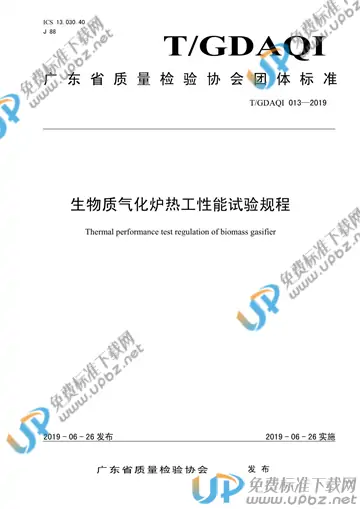 T/GDAQI 013-2019 生物质气化炉热工性能试验规程