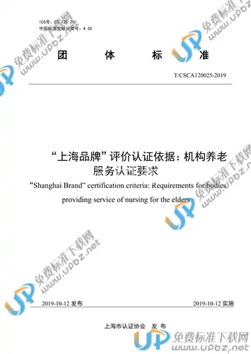 T/CSCA 120025-2019 “上海品牌”评价认证依据:机构养老服务认证要求