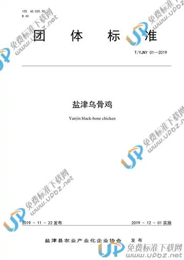 本标准规定了盐津乌骨鸡的术语和定义、保护范围、环境条件、体型外貌特征、品种性能、营养指标、种鸡标准和试验方法