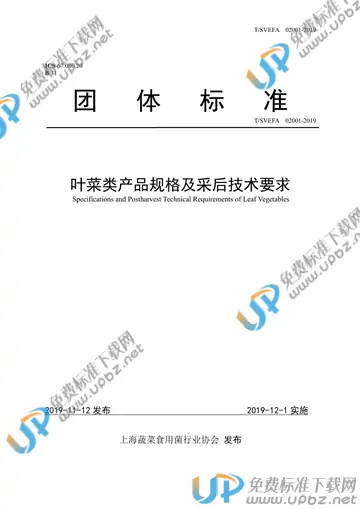 叶菜类产品规格及采后技术要求1范围2规范性引用文件3术语和定义3.1病斑3.2烂斑3.3子叶3.4起苋3.5空心3.6削平3.7胀裂3.8无抽苔3.9结球紧实4规范性技术要素4.1采收4.1.1采收要求4.1.2采收标准 4.2预冷4.2.1预冷方式4.2.2预冷标准4.2.3预冷关键因素4.3分拣(分等分级)4.3.1通用标准4.3.2卫生标准4.4包装4.4.1包装要求4.4.2包装规格4.5运输4.6储藏