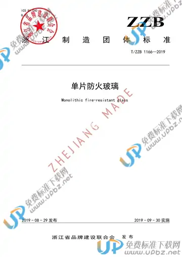 T/ZZB 1166-2019 单片防火玻璃