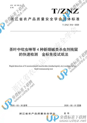 - 标准名称:茶叶中吡虫啉等4种新烟碱类杀虫剂残留的快速测定 金标免疫试纸法