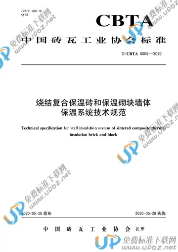 T/CBTA 0005-2020 烧结复合保温砖和保温砌块墙体保温系统技术规范