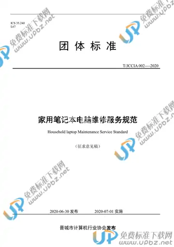 T/JCCIA 002-2020 用笔记本电脑维修服务规范