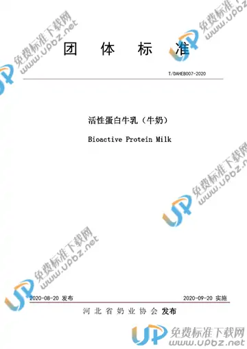 T/DAHEB 007-2020 活性蛋白牛乳(牛奶)