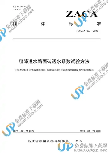 - 标准名称:缝隙透水路面砖透水系数试验方法