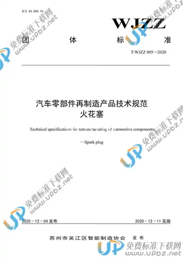 - 标准名称:汽车零部件再制造产品技术规范 火花塞