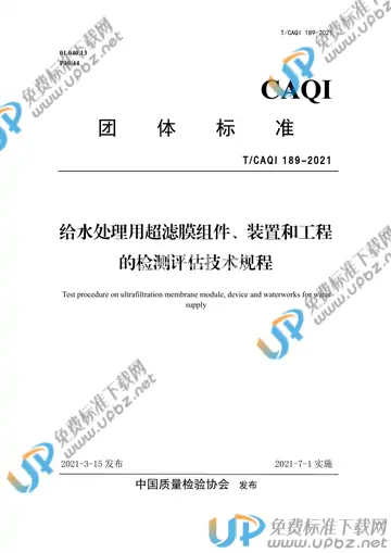 T/CAQI 189-2021 给水处理用超滤膜组件、装置和工程的检测评估技术规程
