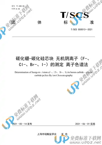 T/SCS 000013-2021 碳化硼-碳化硅芯块 无机阴离子(F-、Cl-、Br-、I-)的测定 离子色谱法