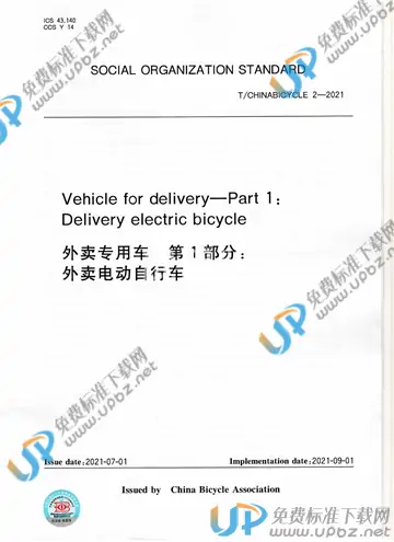 - 标准名称:外卖专用车 第1部分:外卖电动自行车(英文版)
