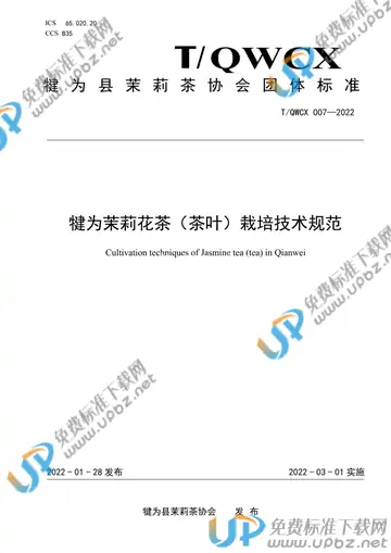 T/QWCX 007-2022 犍为茉莉花茶(茶叶)栽培技术规范