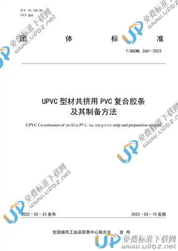 本文件规定了UPVC型材共挤用PVC复合胶条及其制备方法的术语和定义、构成、制备方法、要求、试验方法、检验规则、标志、包装、运输及贮存。本文件适用于UPVC型材共挤用PVC复合胶条的生产和制备。
