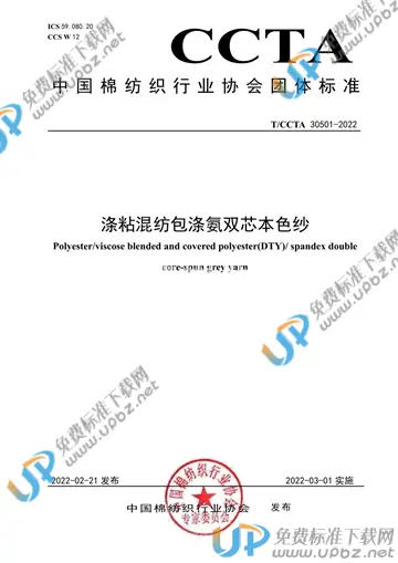 T/CCTA 30501-2022 涤粘混纺包涤氨双芯本色纱