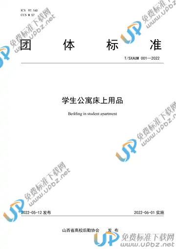 - 标准名称:学生公寓床上用品
