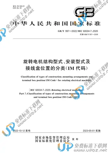 GB/T 997-2022 旋转电机结构型式、安装型式及接线盒位置的分类(IM代码)