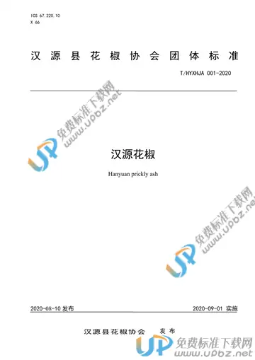 本标准规定了汉源花椒的术语和定义、要求、试验方法、检验规则、标志、标签、包装、运输和贮存要求