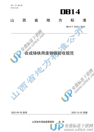 地方标准《合成铸铁用废钢铁验收规范》由山西省装备制造业标准化技术委员会(SXS/TC07)归口上报,主管部门为山西省市场监督管理局。本文件规定了合成铸铁用废钢铁的术语和定义、技术要求、验收方法、验收规则、标识、质量证明书。本文件适用于合成铸铁用废钢铁的筛选和验收。