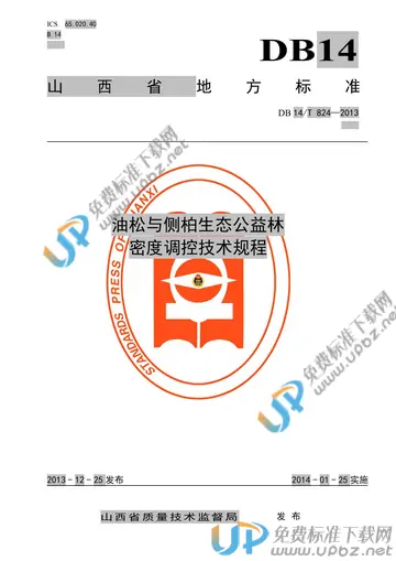 DB14/T 824-2013 油松与侧柏生态公益林密度调控技术规程