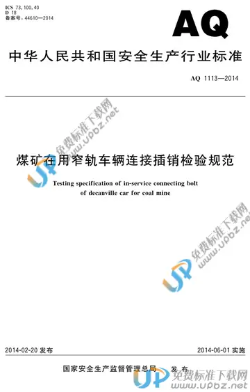 行业标准《煤矿在用窄轨车辆连接插销检验规范》由全国安全生产标准化技术委员会煤矿安全分技术委员会归口上报,主管部门为应急管理部。本标准适用于煤矿倾斜井巷运输用矿车的连接销使用中的检验和斜井使用的矿车的连接插销使用,前和使用中的检验。本标准不适用于矿用人车使用的插销。