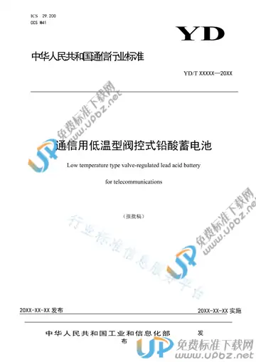 行业标准《通信用低温型阀控式铅酸蓄电池》由中国通信标准化协会归口上报,主管部门为工业和信息化部。