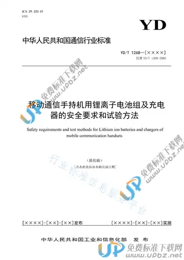 - 标准名称:移动通信手持机用锂离子电池组及充电器的安全要求和试验方法