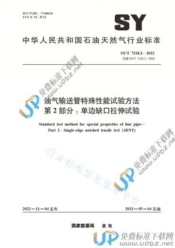 SY/T7318.2-2016油气输送管特殊性能试验方法第2部分:单边缺口拉伸试验SY/T7318.1-2016油气输送管特殊性能试验方法第1部分:宽板拉伸试验SY/T7318.3-2017油气输送管特殊性能试验方法第3部分:全尺寸弯曲试验SY/T7318.4-2018油气输送管特殊性能试验方法第4部分:全尺寸气体爆破试验SY/T7318.5-2021油气输送管特殊性能试验方法第5部分:全尺寸断裂阻力试验SY/T6859-2012油气输送管道风险评价导则SY/T6859-2020油气输送管道风险评价导则SY/T6853-2012油气输送管道隧道设计规范SY/T7403-2018油气输送管道应变设计规范碳纤维复丝拉伸性能试验方法