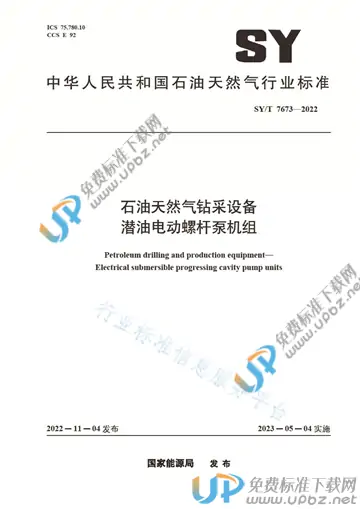 - 标准名称:石油天然气钻采设备 潜油电动螺杆泵机组