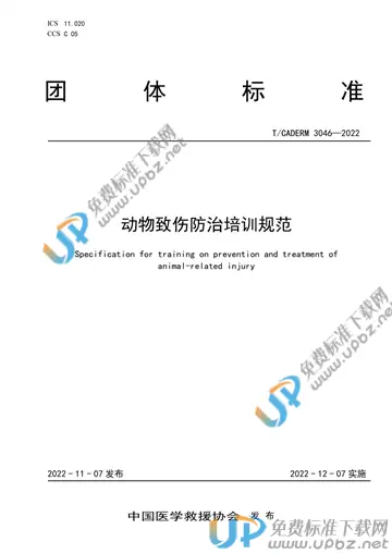 本文件界定了动物致伤防治培训的术语和定义,规定了动物致伤防治培训的培训目标、培训内容、培训模式、教学方法、师资要求、质量控制、培训考核,以及追溯方法