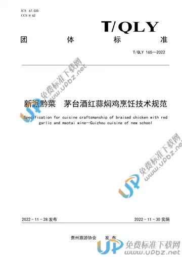 - 标准名称:新派黔菜 茅台酒红蒜焖鸡烹饪技术规范